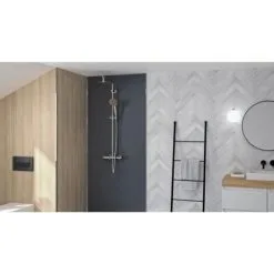 KINEDO Paroi De Douche Fixe Smart Design Solo Avec Mât, 200 X 110, Noir Mat