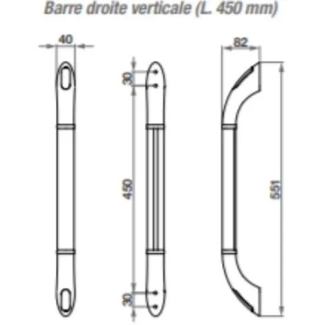 Barre supportant jusqu à 150 kg de charge : installation avec 2 vis par point de fixation